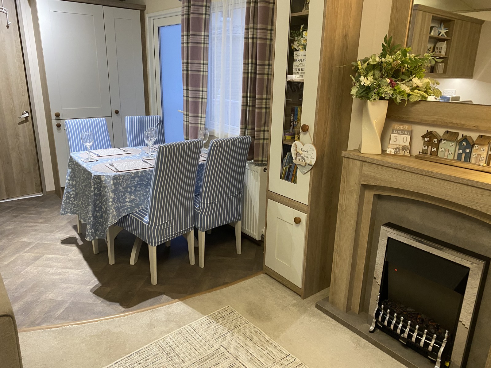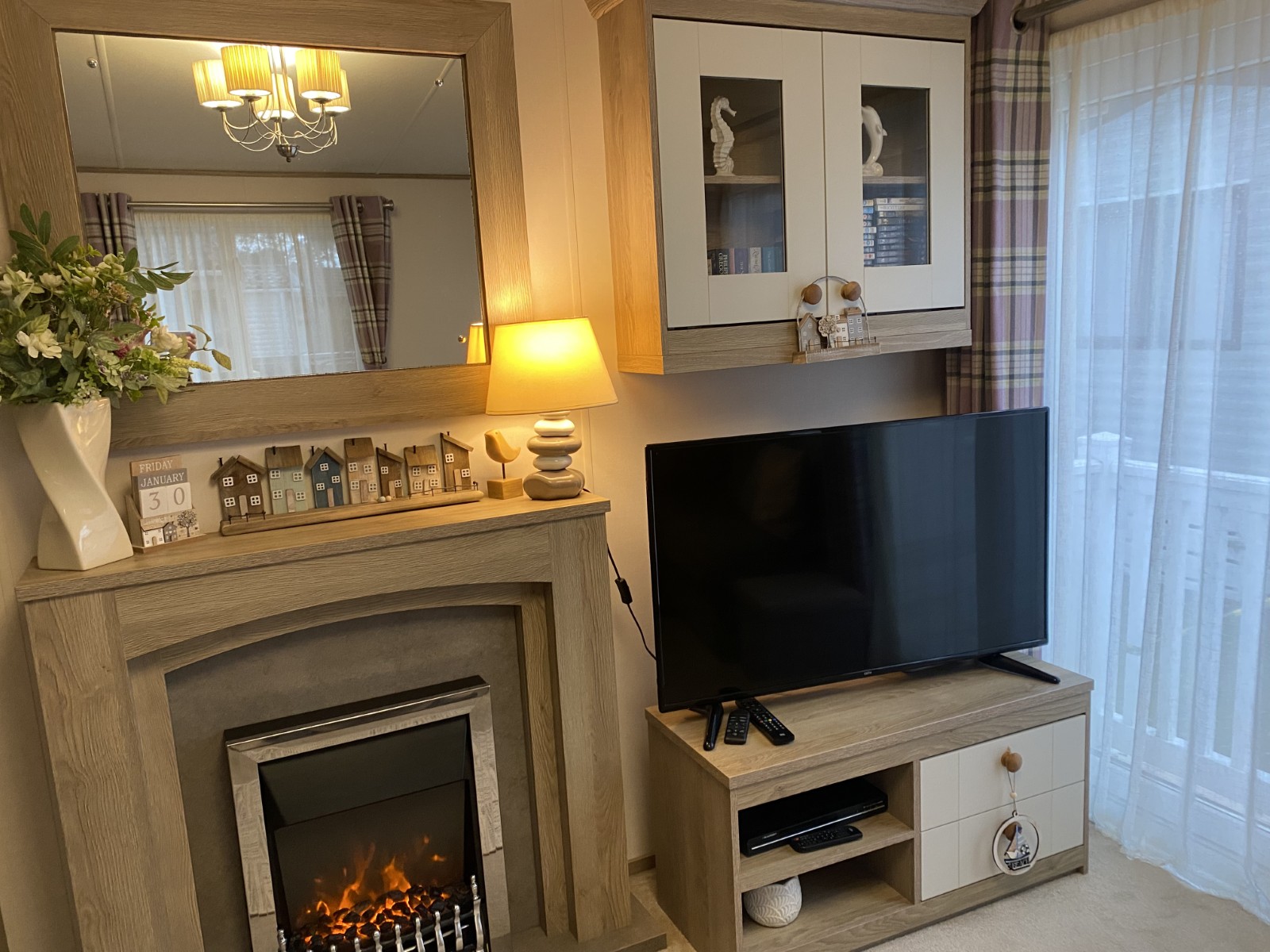 THE LOUNGE has a fireplace fitted with a coal-effect electric fire which can be remotely controlled.The built-in seating is generous and extremely comfortable and there are books and games for all ages in the built-in cabinets as well as a TV and plenty of DVDs for entertainment.